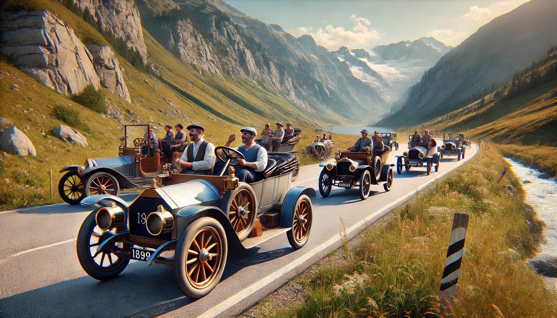 DALL·E 2024-07-07 19.45.50 – A realistic photo image capturing a peaceful moment of the 1899 Tour de France Automobile race through the European
